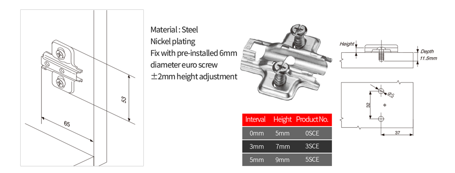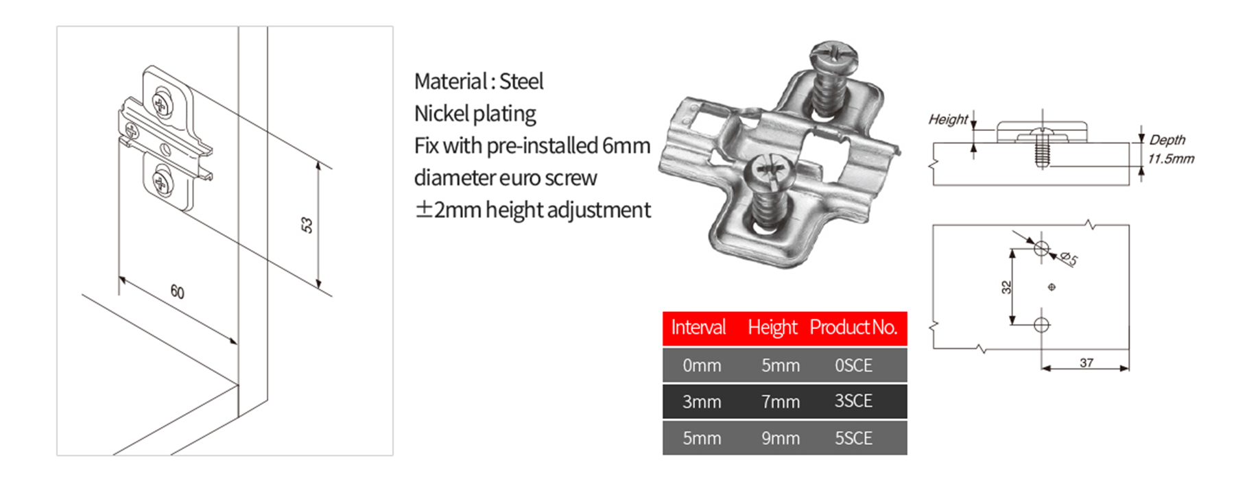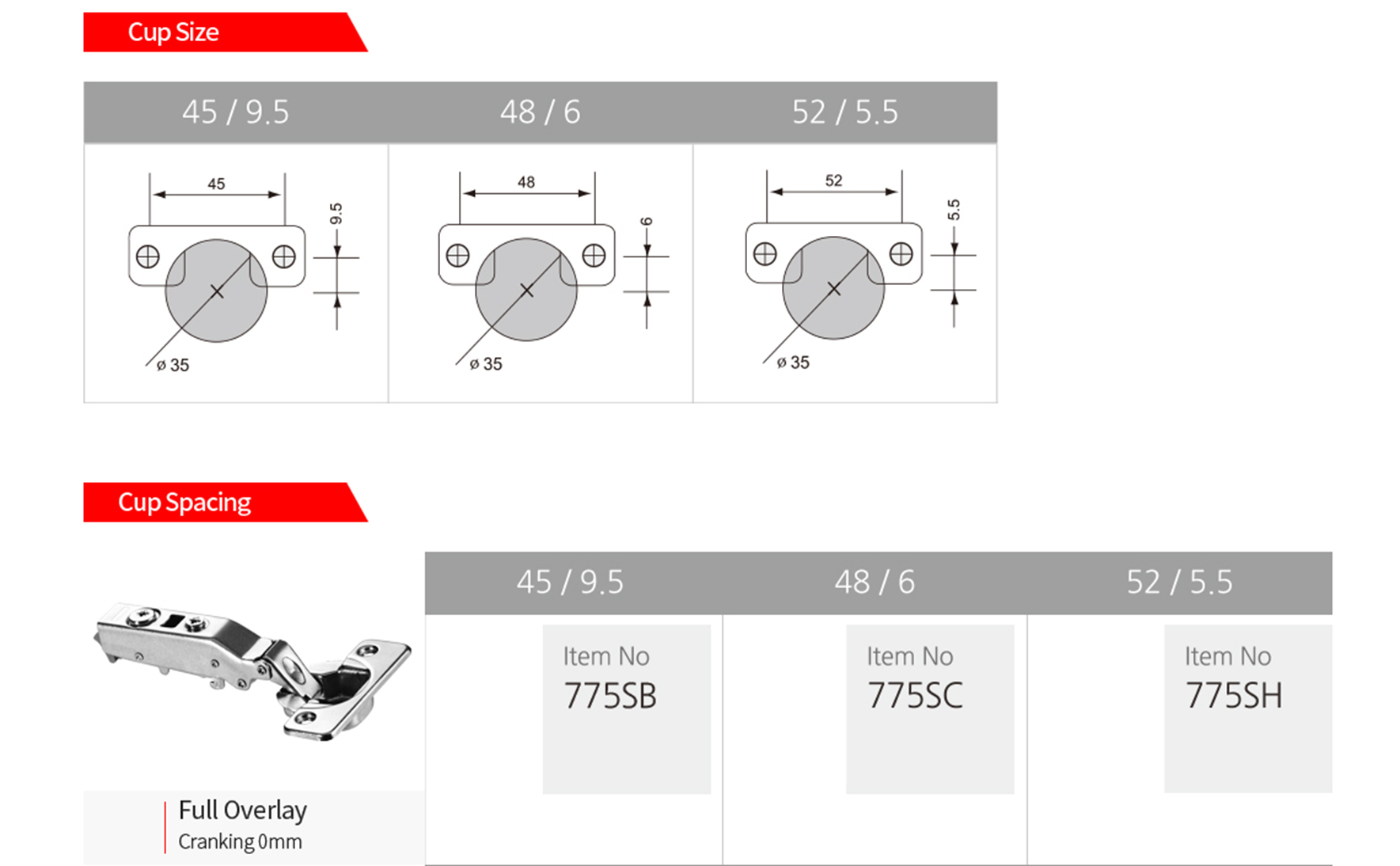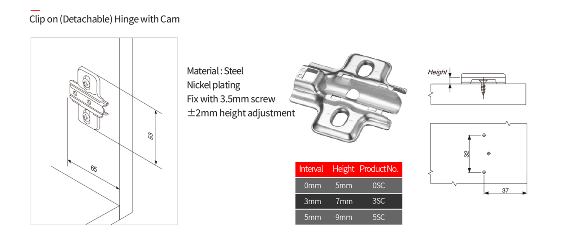 Soft-Closing Hinge(Clip on with Cam), 110˚ opening Angle