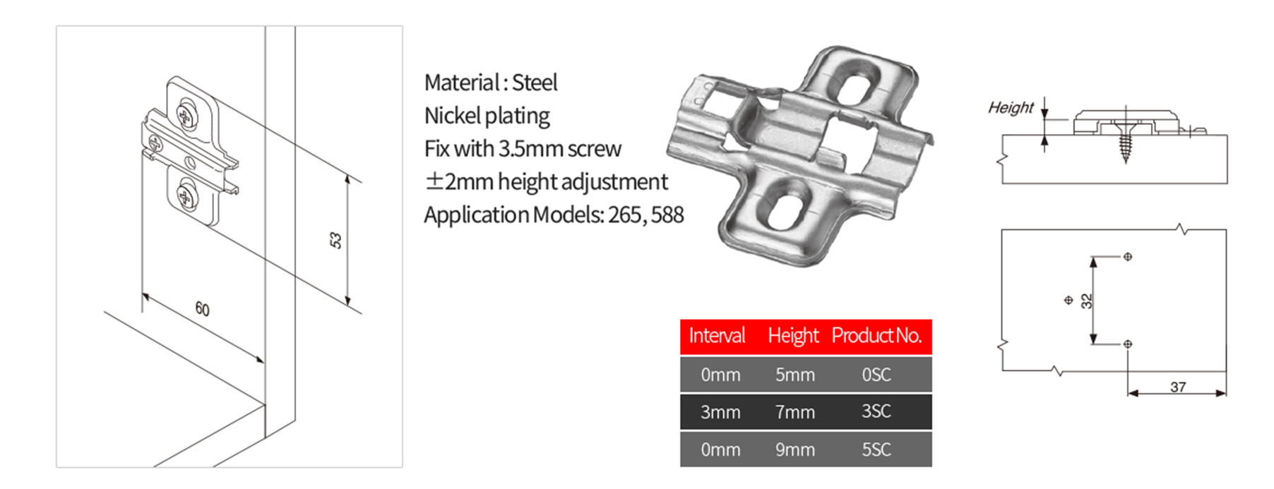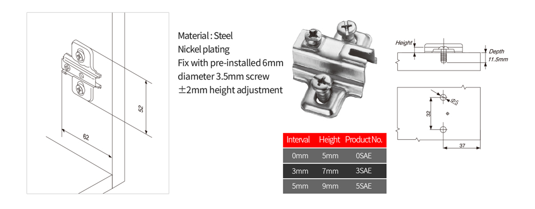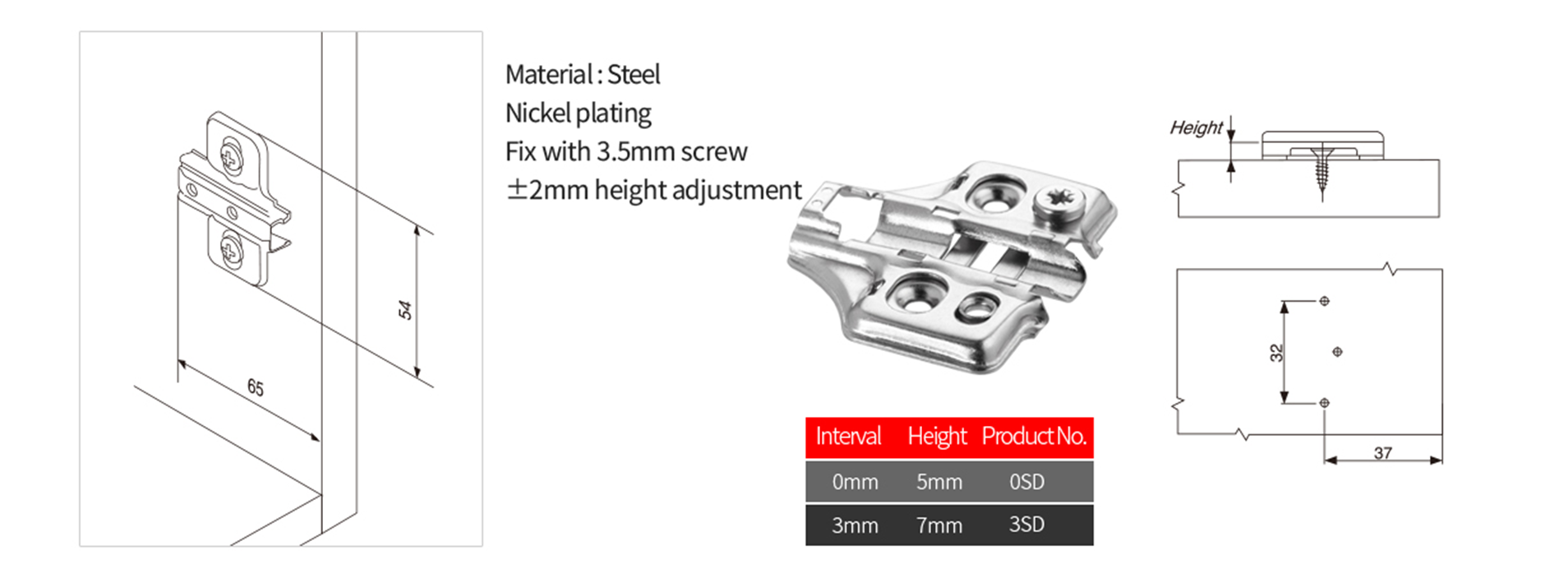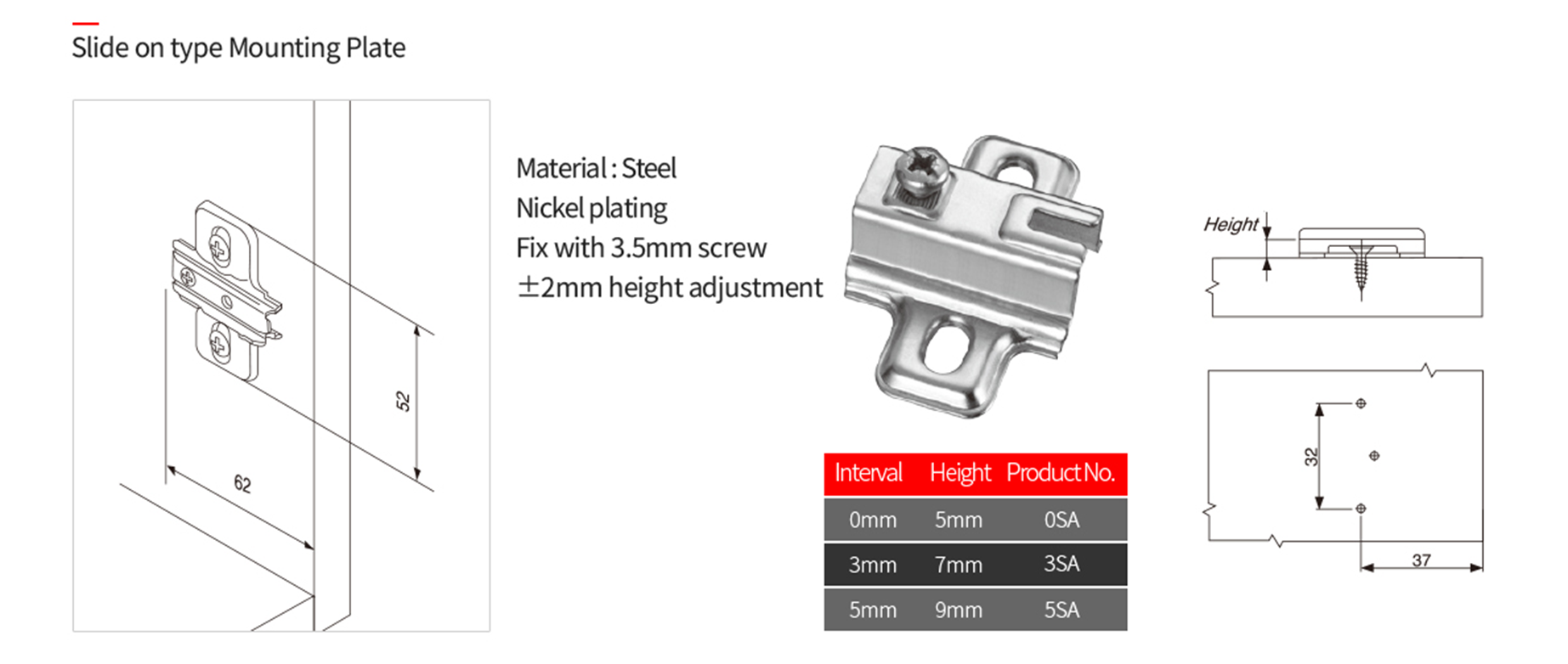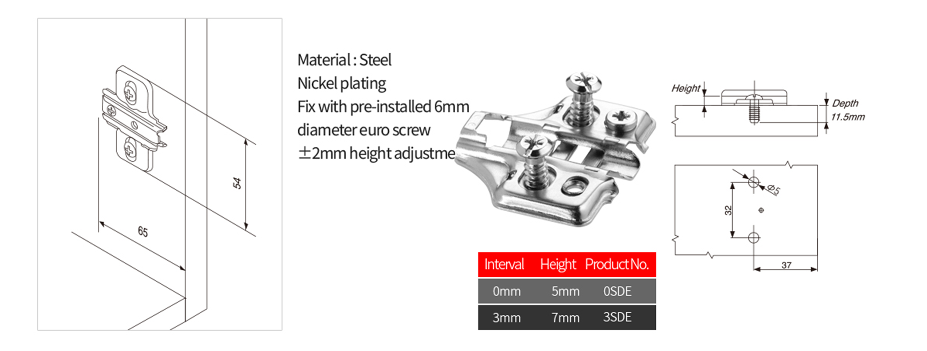 Soft-Closing Hinge(Clip on with Cam), 110˚ opening Angle